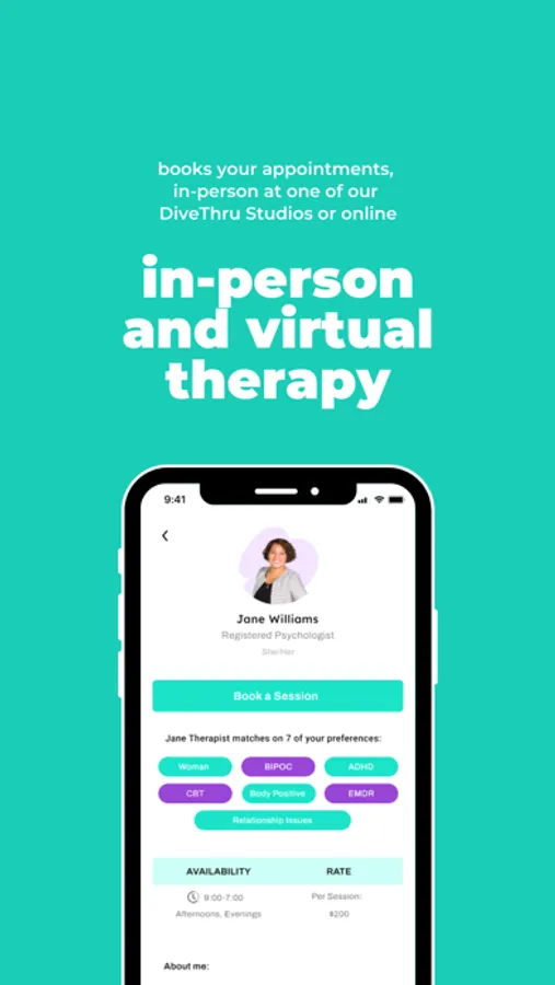 At DiveThru, you can find a therapist who reaallly gets you. With our thorough matching tool, we can connect you to a therapist that is the right fit for your needs. Whether virtually or in-person at our studio, you can access individual, child/youth, couples or family therapy.
