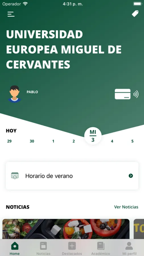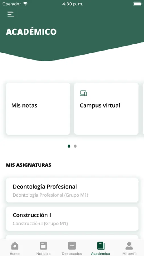 • Perfil privado: Todos tus datos personalizados según tu perfil universitario. Consulta tus asignaturas, calificaciones, etc. Y también tu tarjeta universitaria digital. ¡Siempre la llevarás contigo!