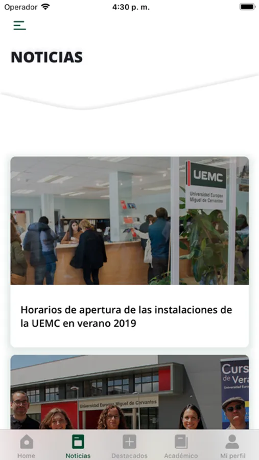 • Información de la universidad: Consulta toda la información sobre la Universidad Europea Miguel de Cervantes (eventos, noticias, oferta educativa, accesos…).