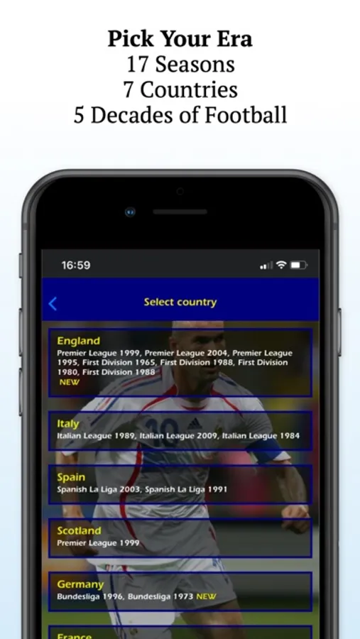 We are adding new seasons every month to the game, which currently includes 40 seasons from 8 countries across 5 decades, with the European Cup and Champions League.