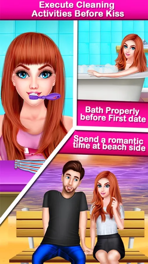 "What factors should be considered before a kiss?" is illustrated in this game. Waiting for signals, when to back off, which shows green signal, etc. are covered in the game with lots of fun task and kissing prank game.