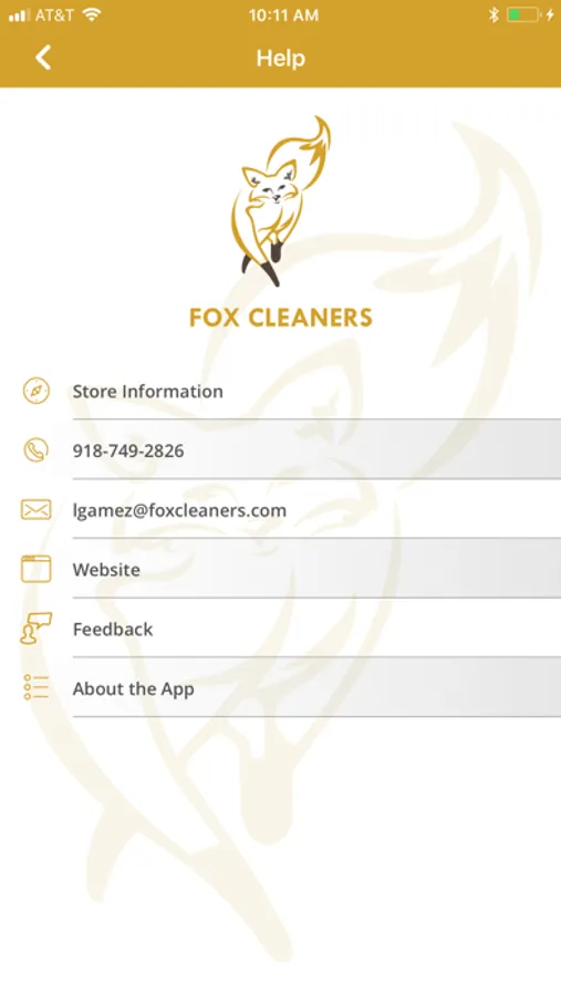 5) Quickly contact Fox Cleaners by phone or email and access their website all directly from your device.