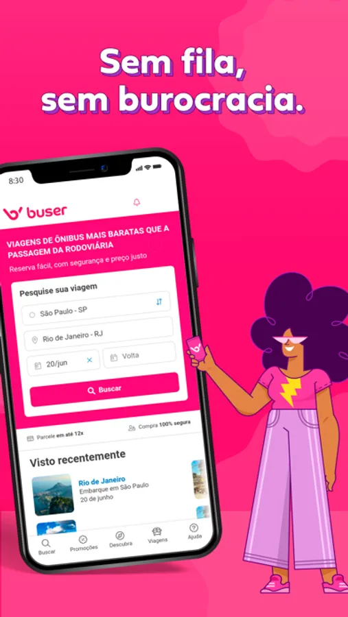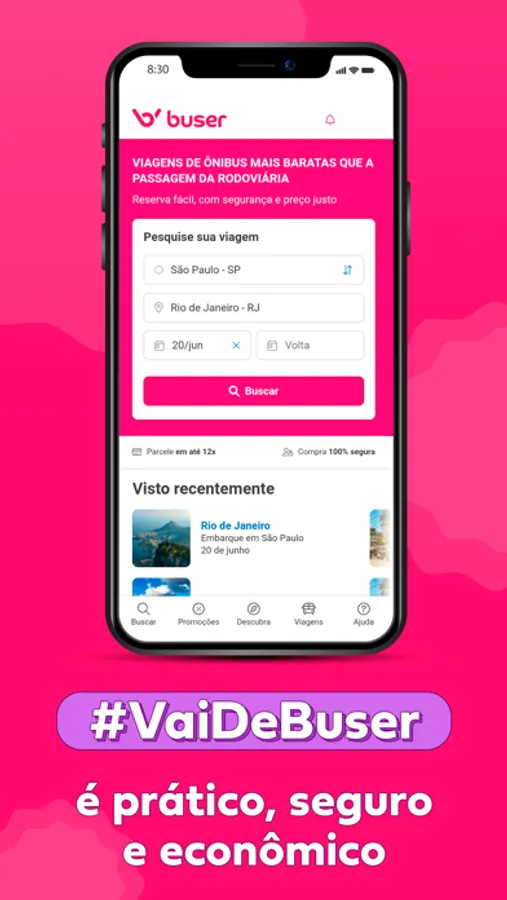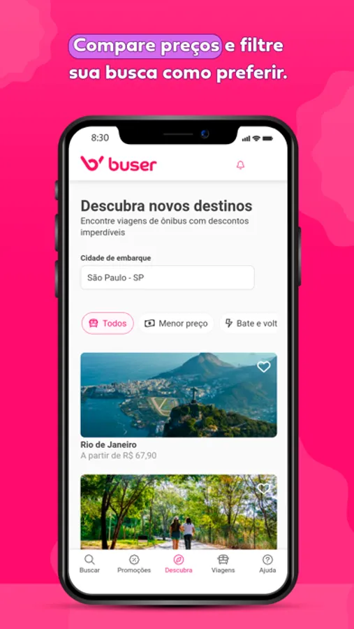 Na Buser, viajantes podem encontrar pessoas interessadas em fazer uma mesma viagem numa mesma data. E juntas, elas poderão fretar um ônibus executivo para levá-las.