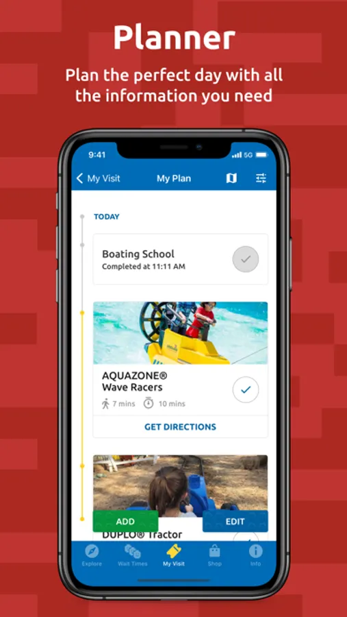 • Use our Planner tool to get all the information you need for your visit before you’ve even arrived. Tell the app who is in your party to see which rides are suitable for everyone. Then add your favourites and check them off as you go!