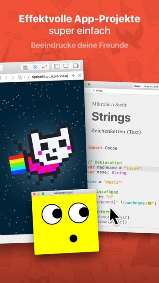 Lerne die Programmiersprache Swift und entwickle Apps für deinen Mac, iOS, tvOS oder iPadOS. Mit Mikrolern für Swift lernst du Programmieren in kleinen Lektionen: Zügig und unterhaltsam vorgetragen.