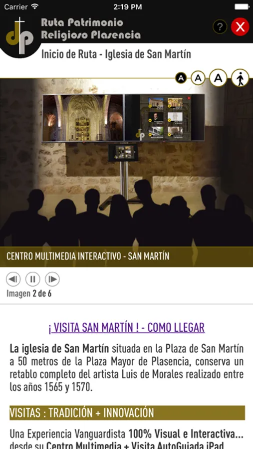 Además la IGLESIA de SAN MARTÍN sorprende al viajero con una EXPERIENCIA VANGUARDISTA 100% VISUAL e INNOVADORA... desde su CENTRO MULTIMEDIA INTERACTIVO y con su VISITA AUTOGUIADA con Dispositivos Móviles por el PATRIMONIO RELIGIOSO de PLASENCIA.