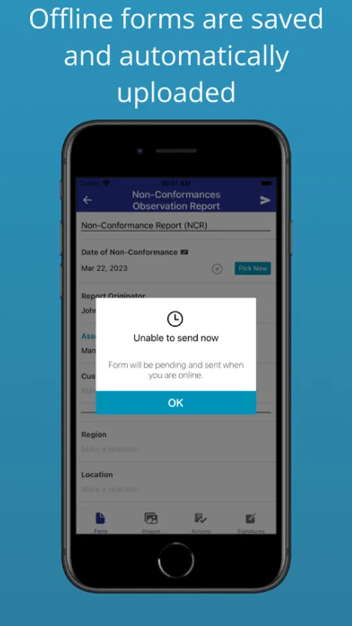 Offline mode allows QuartzQMS users to complete Quality Management forms even when no Internet connection is available. When offline, forms are stored locally on the user's device until a network connection is found. When an Internet connection is made, forms are automatically uploaded to the user’s subscription.
