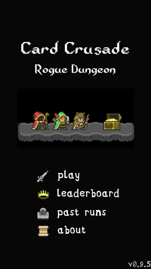 Card Crusade is a roguelike deck building game. Unlock eight different character classes as you explore the ten floors of a winding dungeon. Assemble your deck to unleash unstoppable combos on your enemies. Fight monsters, gain experience, and level up your character to defeat the final boss and become the Card Crusader!