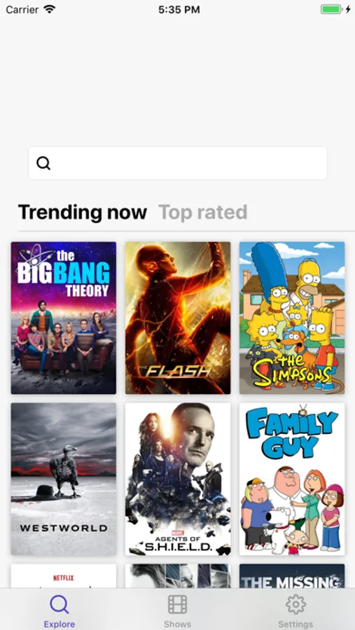 • Trending and top rated TV series,