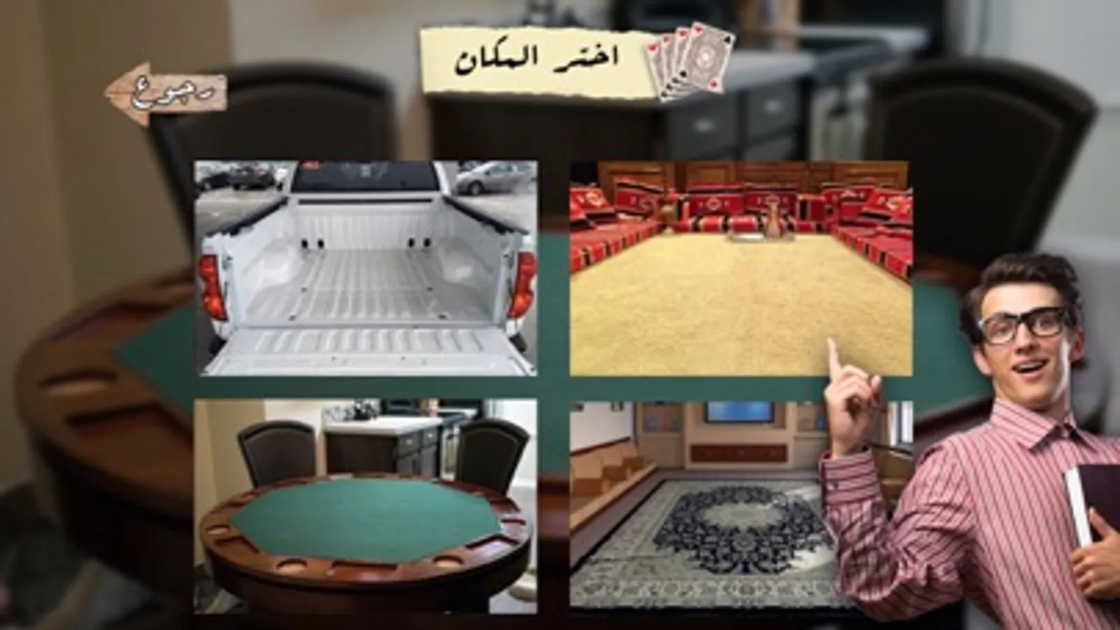 تستطيع اختيار اللعب في عدة أماكن (مجلس عربي، طاولة كوتشينة احترافية، ظهر سيارة نقل "بك أب"، غرفة جلوس)