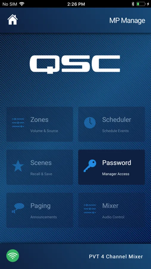 MP Manage is an app for use by the staff of facilities with QSC MP-M40 or MP-M80 music and paging mixers installed. These mixers, offering unprecedented capabilities combined with ease of configuration and operation are intended for retail and hospitality applications in which paging messages and high-quality audio from various sources is routed to multiple zones. Live mixing functions are also supported for applications requiring reinforcement of entertainment, presentations or conferences. The functions available to the MP Manage user are determined by the installer of the MP-M40 or MP-M80. These functions may include:
