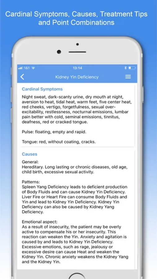 With the Foundations of TCM in the Shen Acupuncture app, you will get started with Traditional Chinese Medicine much faster than by using a conventional reference book.