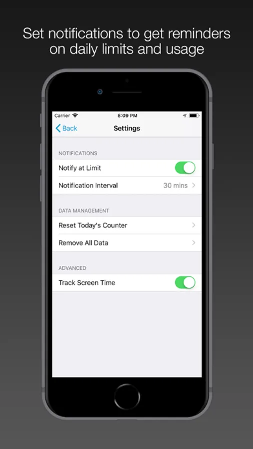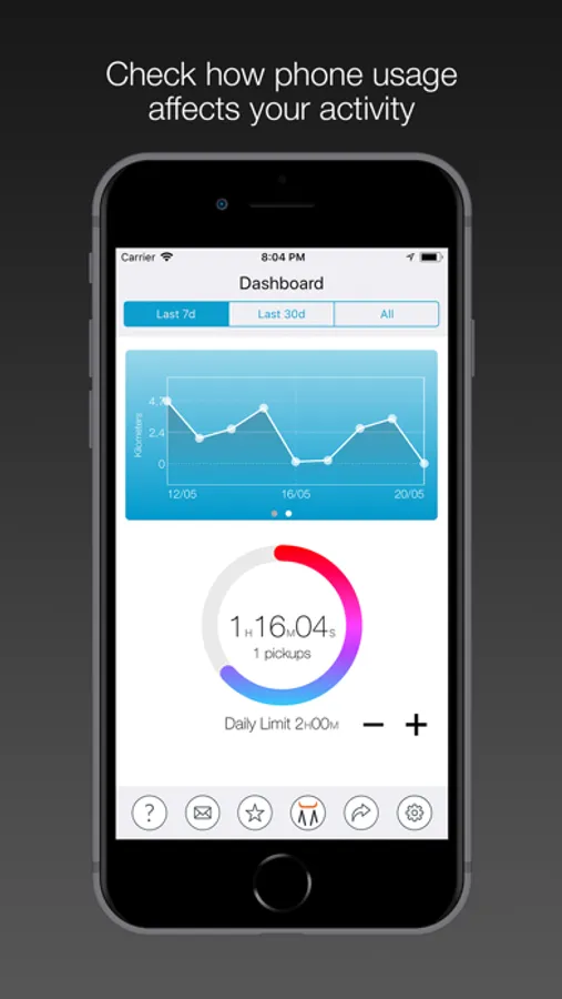 Track how much you use your phone, and get results presented in comprehensive graphs. Set personal daily limits to reduce your phone usage time, and find a balance for other important activities in your life!