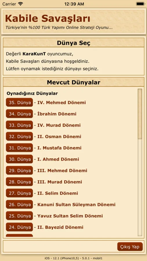 Oyuncu, Kabile, Ganimet ve Öldürülen Düşman istatistikleri.