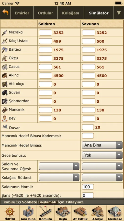 Komuta merkezinde savaş emirlerini verebilir ve ordularınız ayarlayabilirsin. İlk 3 dakika içinde emirler iptal edilebilir.
