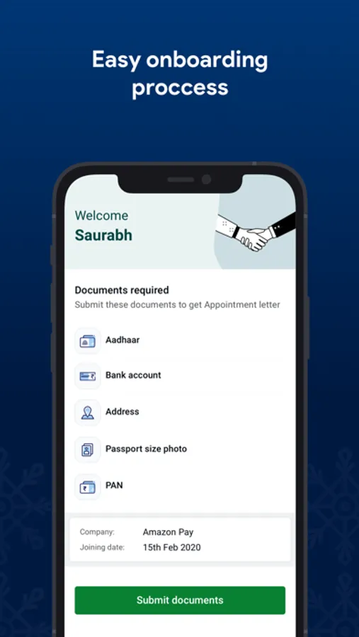 - Onboarding details