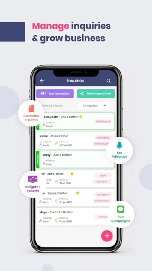 • Digitized Admission Process through sharing of digital enquiry forms with parents