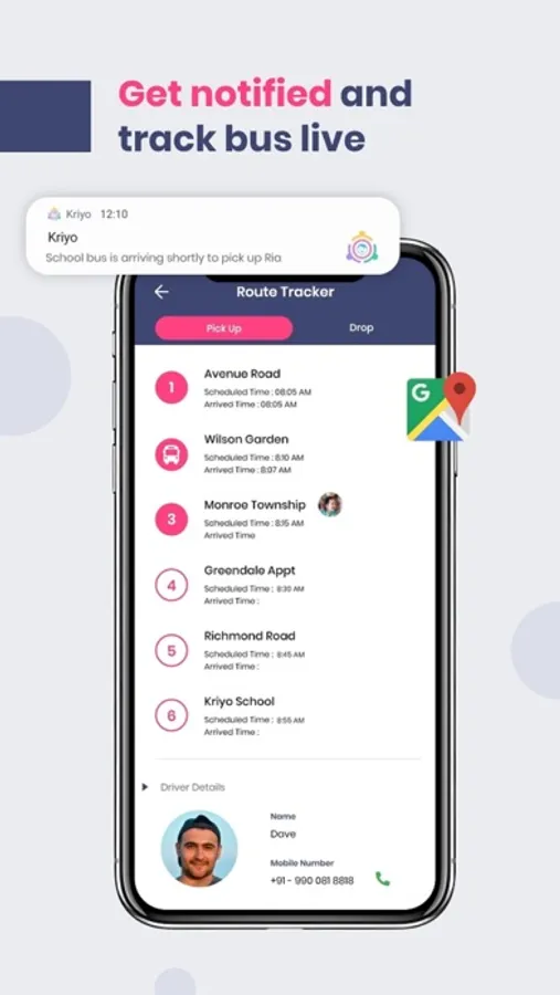 Parents get all the updates from school instantly on the Kriyo Parent App.
