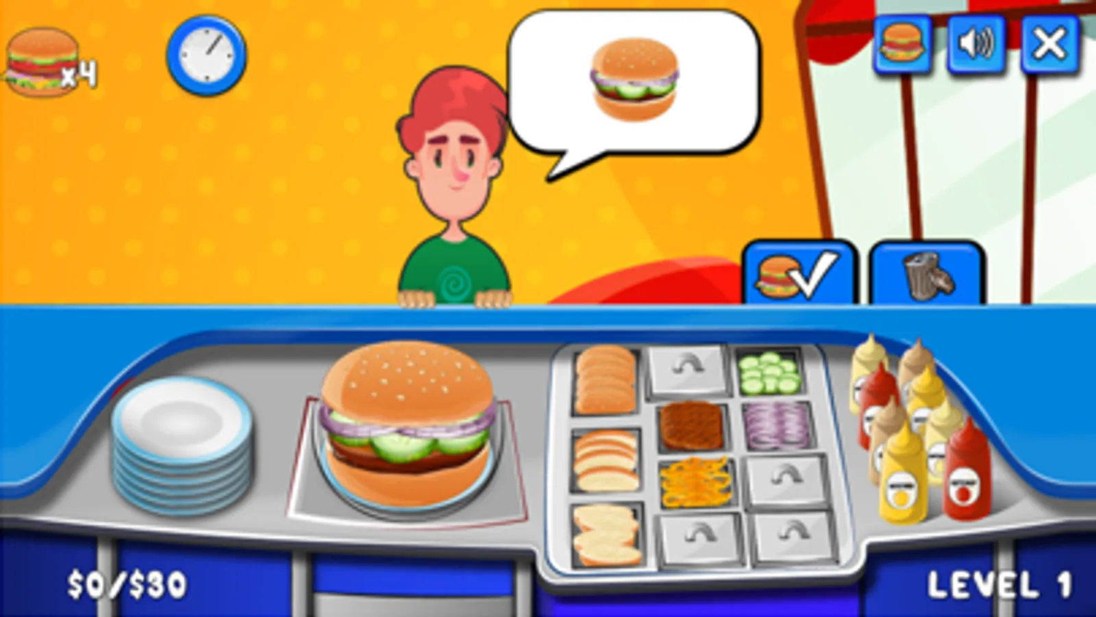 Serve these hungry customers the best burger! Prepare the dish they order and make sure not to make them wait longer!