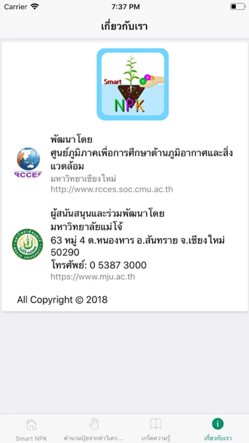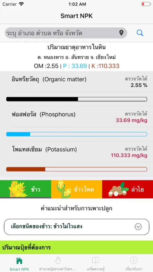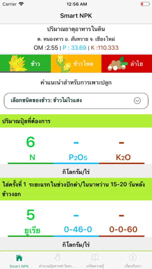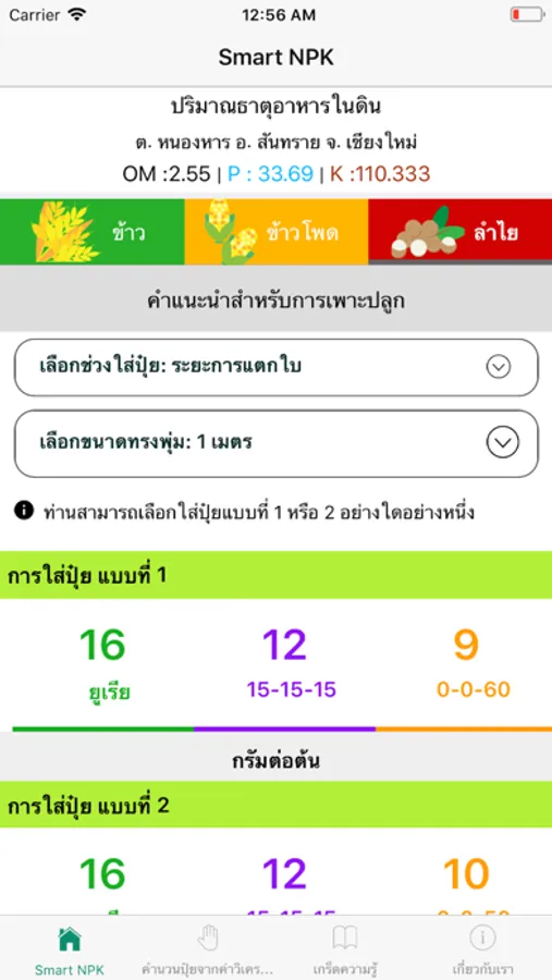 เครื่องมือสำหรับแนะนำการใส่ปุ๋ยให้กับเกษตรกรไทยที่ปลูก ข้าว ข้าวโพด ลำไย มะม่วง มันสัมปะหลัง มะเขือเทศ และพริก โดยผู้ใช้สามารถรับข้อมูลจากตำแหน่งปัจจุบัน หรือค้นหาจากช่องค้นหา และยังสามารถระบุค่าผลการวิเคราะห์ดินเพื่อคำนวนปุ๋ยที่เหมาะสมกับพืชที่ปลูกและต้นทุนความอุดมสมบูรณ์ของดินด้วยตัวคุณเอง และมีเนื้อหาสำหรับให้ความรู้เพิ่มเติมกับการเกษตรกรอีกด้วย