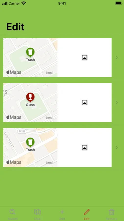 Do you recognize this situation? You just emptied your drink and you want to throw it in the trash because you don't litter. Usually it takes a while before you come across a garbage can. With this app this situation is a thing of the past. When you need a dustbin, select the category you need - such as garbage, plastic, glass, clothing, dog... - and then you can use the GPS to navigate to the nearest bin. Since not all garbage cans are on the map yet, we are counting on you to add them so that other users - but of course also yourself - can navigate to the nearest bin without any problems.