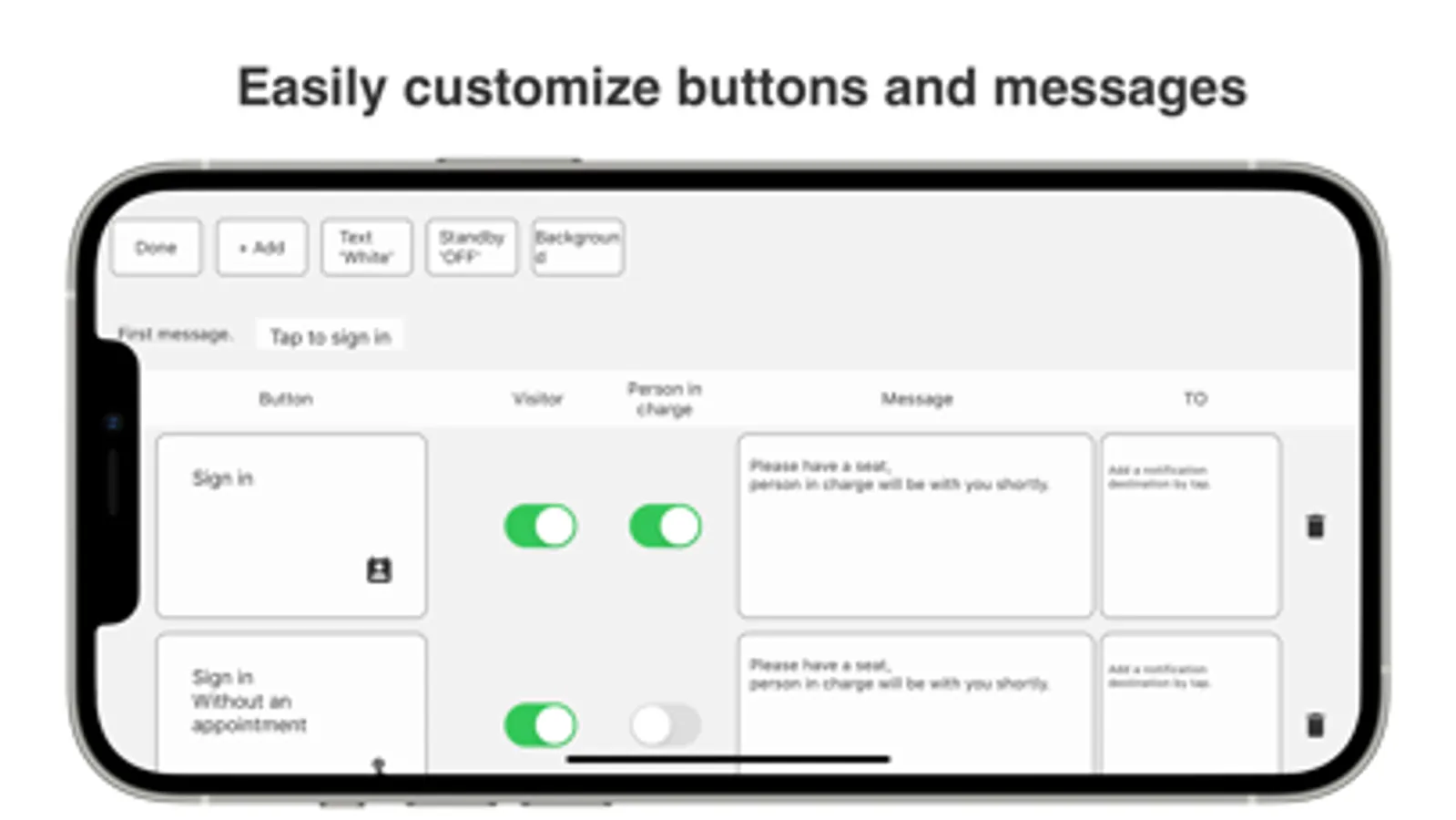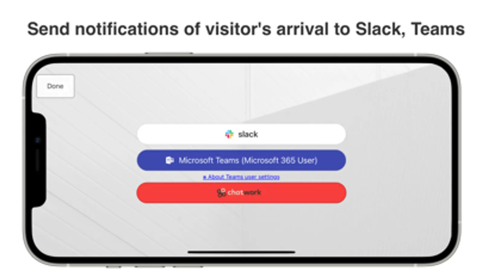 The app is a visitor management system. Accept and notify your visitors with your chat tool.
