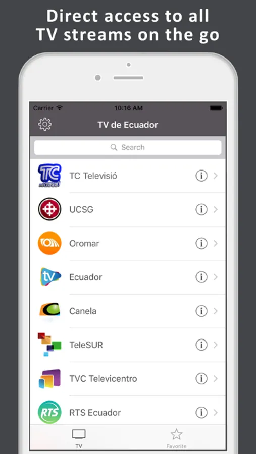 "TV de Ecuador" does not include any store recorded videos, footage etc. There are no any videos in "TV de Ecuador". The "TV de Ecuador" does not and will not relay any channels. All data used in the "TV de Ecuador" can be found in the Web. It is combined it in a single program. All descriptions and images used in the "TV de Ecuador" are the property of their respective owners. If you still have any questions about functionality of "TV de Ecuador" or the TV sources integrated into it, please write on the email noted on the app`s description in App Store
