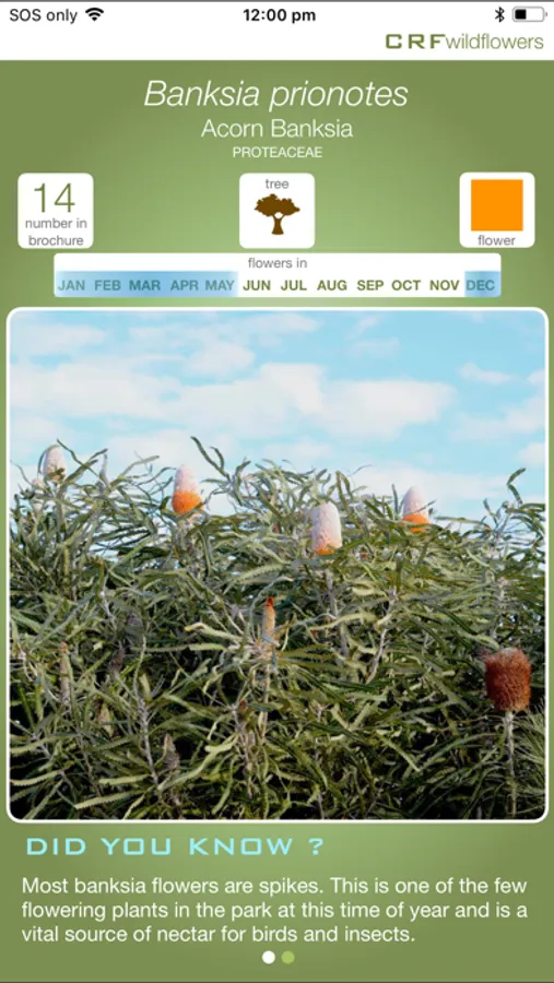 Within this app, you can search for wildflowers based on their growth habit, flowering season and the flower colour. There are a number of colour photos for each species, showing key plant characteristics to aid identification, including the flowers, buds, seeds and leaves. Interesting facts on most species can also be found within the app to help you identify and remember the various species!