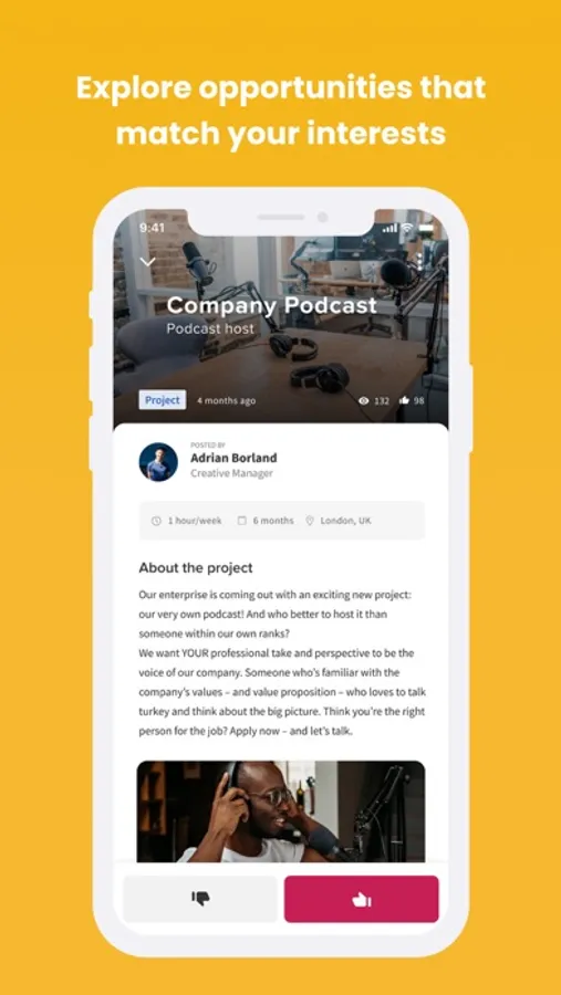 Our AI-based career development platform matches users with personalized open career opportunities in real time within the company.