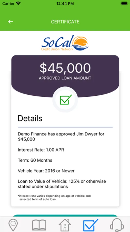 • A digital vehicle loan approval certificate for members who are currently approved for a vehicle loan.