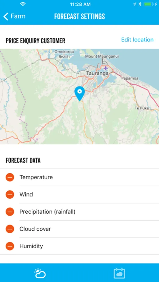 • Change location easily with a drop pin to view the forecast most accurate for your farm