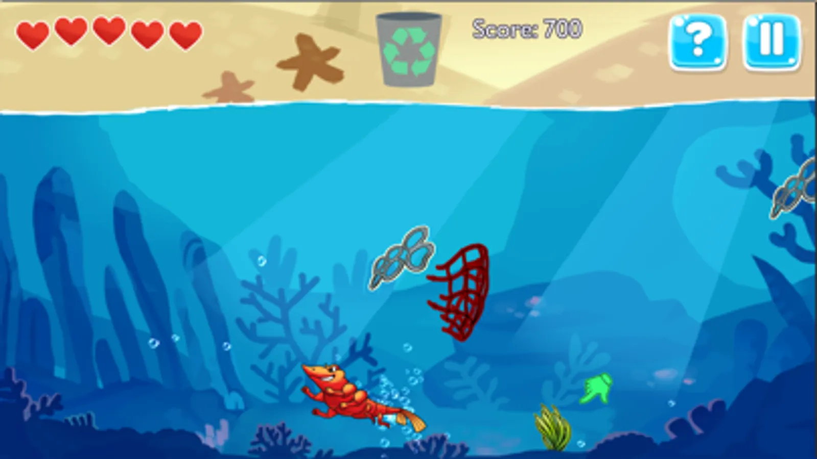Join Jack and become a SUPER PRAWN in the fight to save our oceans! Collect and recycle harmful plastics from the ocean, free your sea friends and learn more about the ocean in this easy to pick up, family friendly, endless wave, arcade game!