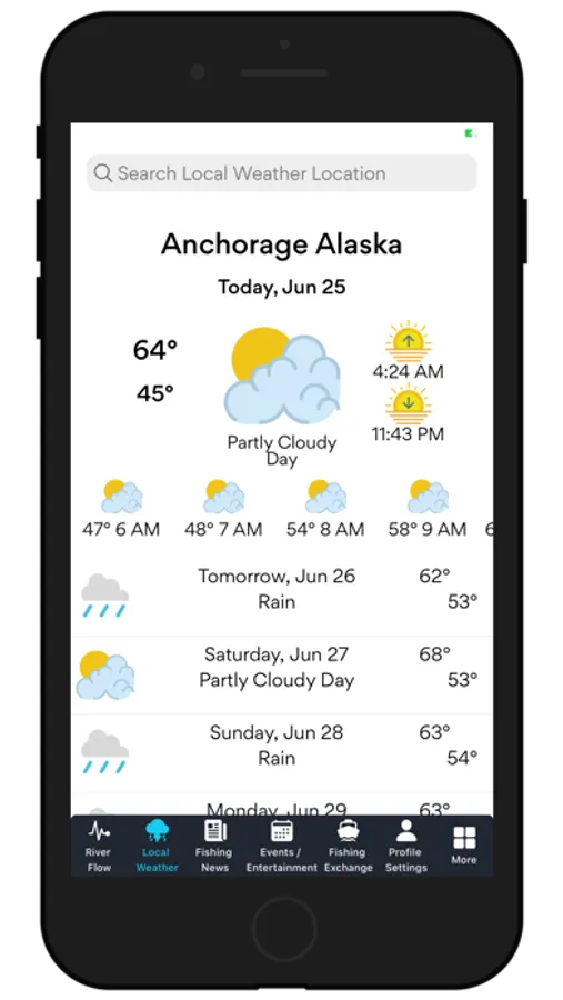 • Local Weather – automatically set for your current location • Live Buoys – real-time wind and swell information from buoys floating in Alaska’s waters
