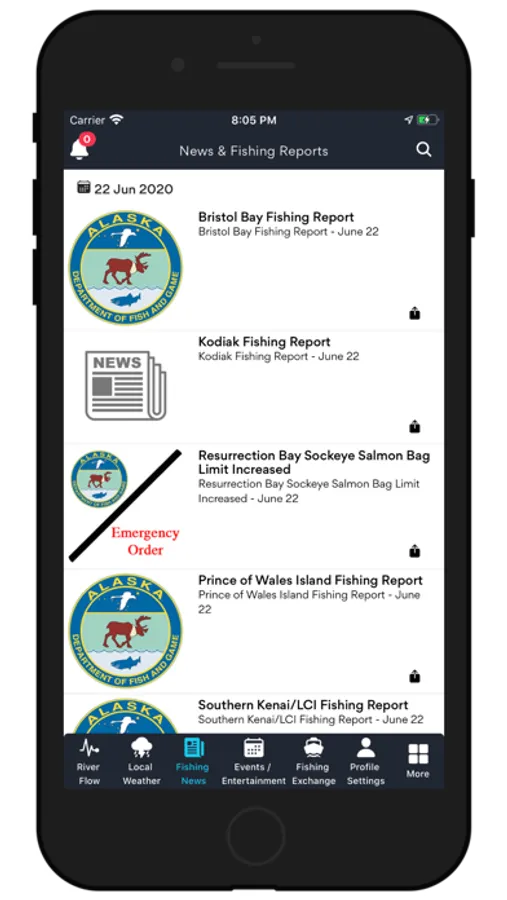 • News & Fishing Reports – updated from fish & game and other resources including emergency orders