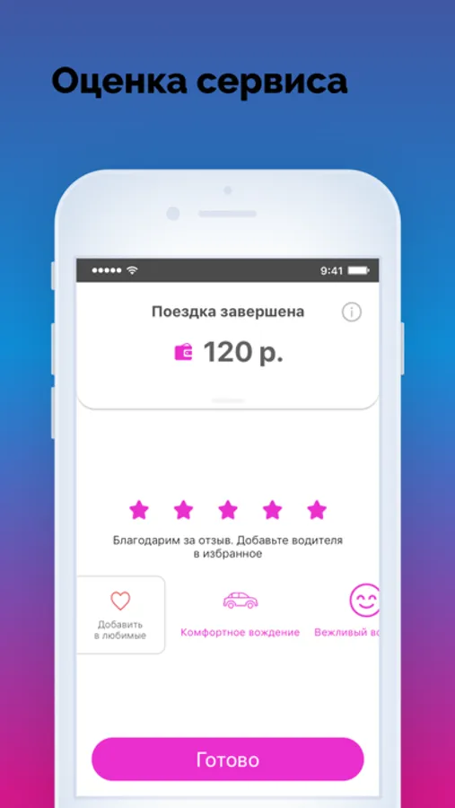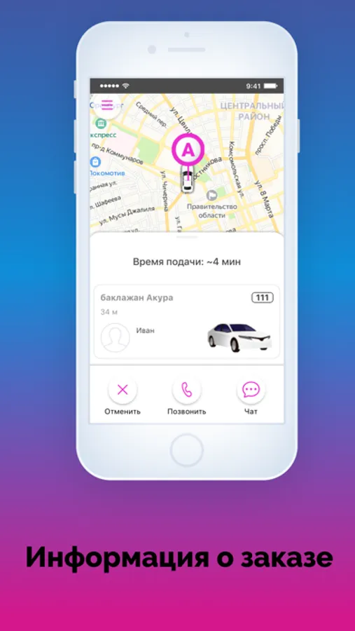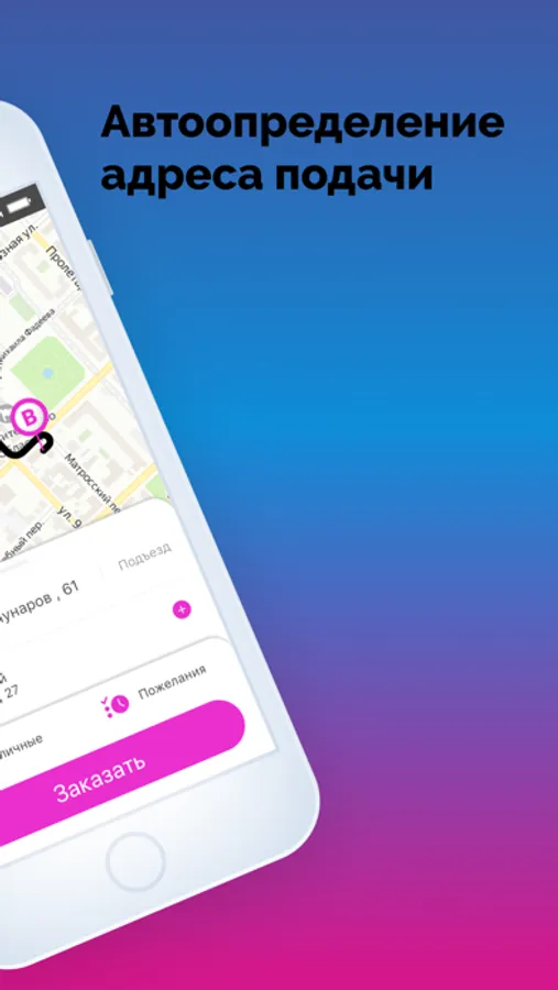 + СЛЕДИТЕ ЗА ПОЕЗДКОЙ на карте. Приложение сообщит время подачи, марку, цвет, номер машины, а также имя водителя.