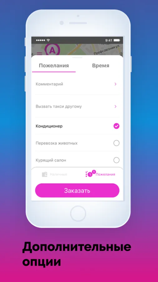 + ВЫЗЫВАЙТЕ ТАКСИ К ОПРЕДЕЛЕННОМУ ВРЕМЕНИ, если нужно запланировать поездку заранее. Подойдет, когда надо приехать на вокзал, в аэропорт или встретить кого-то.