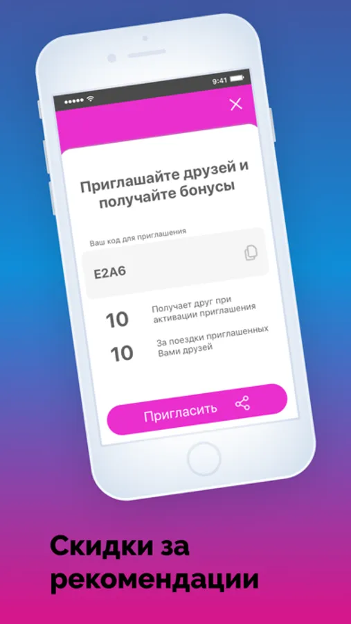 + ПОЛУЧАЙТЕ БОНУСЫ за приглашения друзей. Используйте их на оплату поездок. Количество бонусов можно распределить перед созданием заказа.