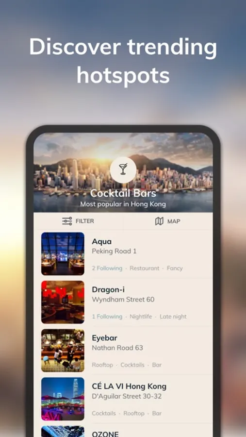 Discover the best hotspots and events in your city, or on your city trip. Be inspired by people you trust, friends, local experts, influencers, and like-minded members of the community.