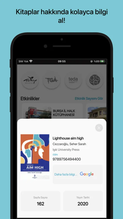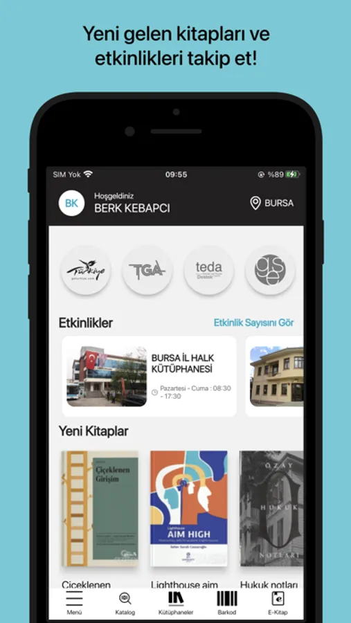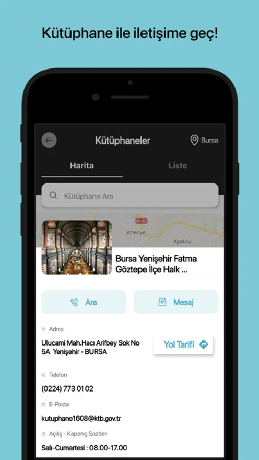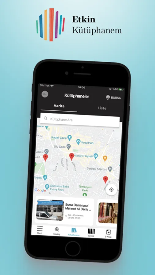 Uygulama ile Kütüphane bilgilerine ulaşabilir, Katalog araması yapabilir, Barkod ile ilinizdeki kütüphaneler veya üye olduğunuz kütüphane de arama yapabilirsiniz.