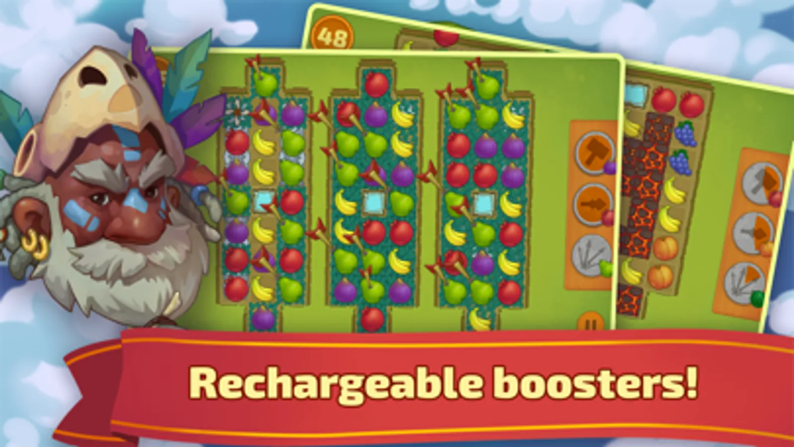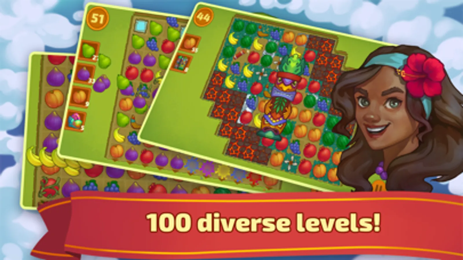 Help the young heroine rebuild her house on the 11 islands. Collect three juicy pieces of fruit in a row, excavate the tribe’s magic totems, and defeat the demons of the volcano to restore the tropical tribe’s prosperity!