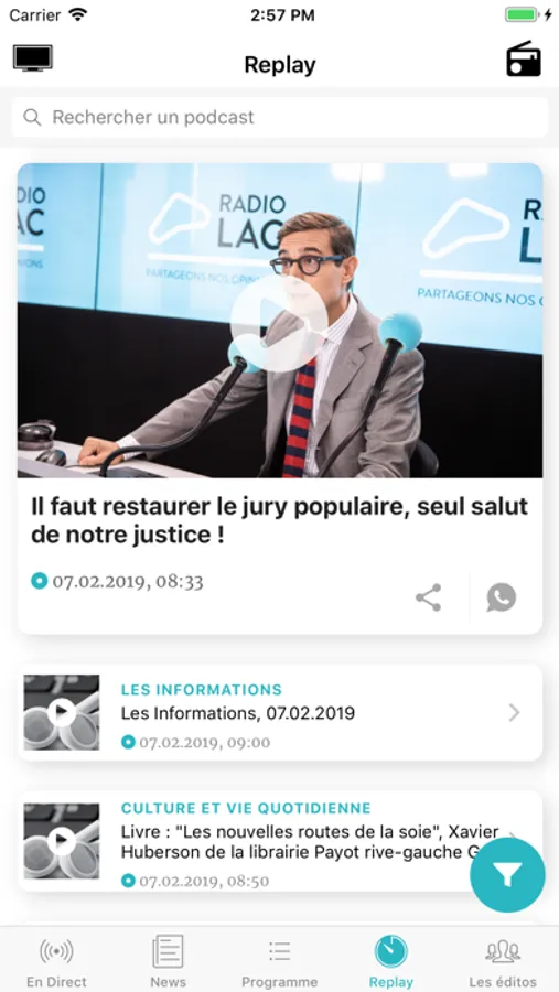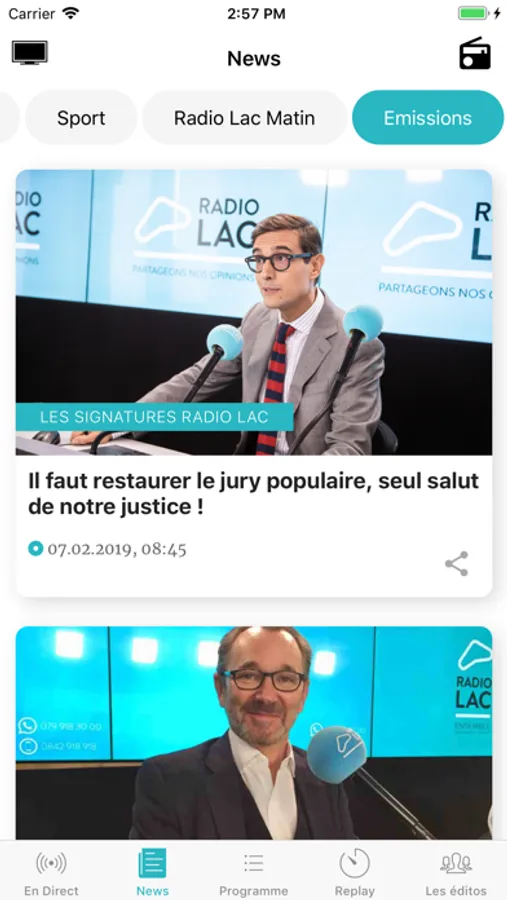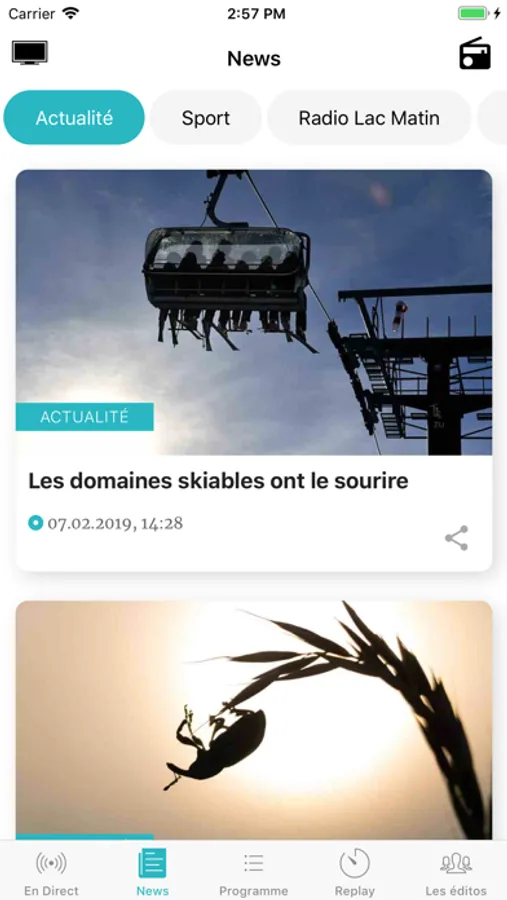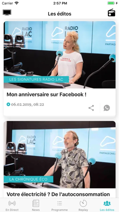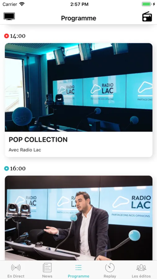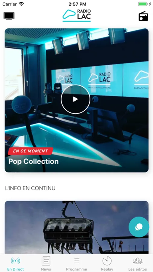 - Accédez rapidement au Direct Radio en audio et vidéo