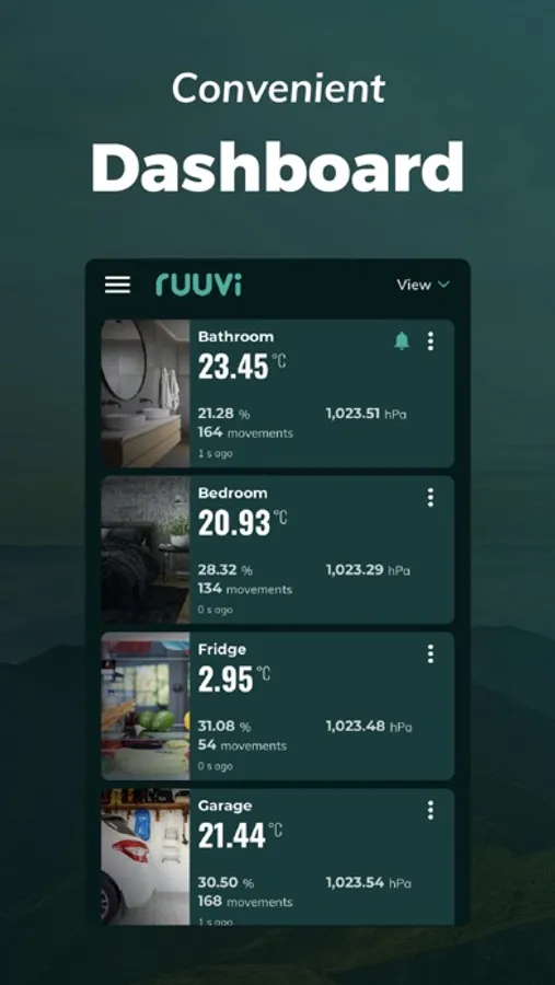 Ruuvi Station collects and visualises Ruuvi sensor data, such as temperature, relative air humidity, air pressure and movement from local Bluetooth Ruuvi sensors and Ruuvi Cloud. Additionally, Ruuvi Station allows you to manage your Ruuvi devices, set alerts, change background photos, and visualise the gathered sensor information through graphs.
