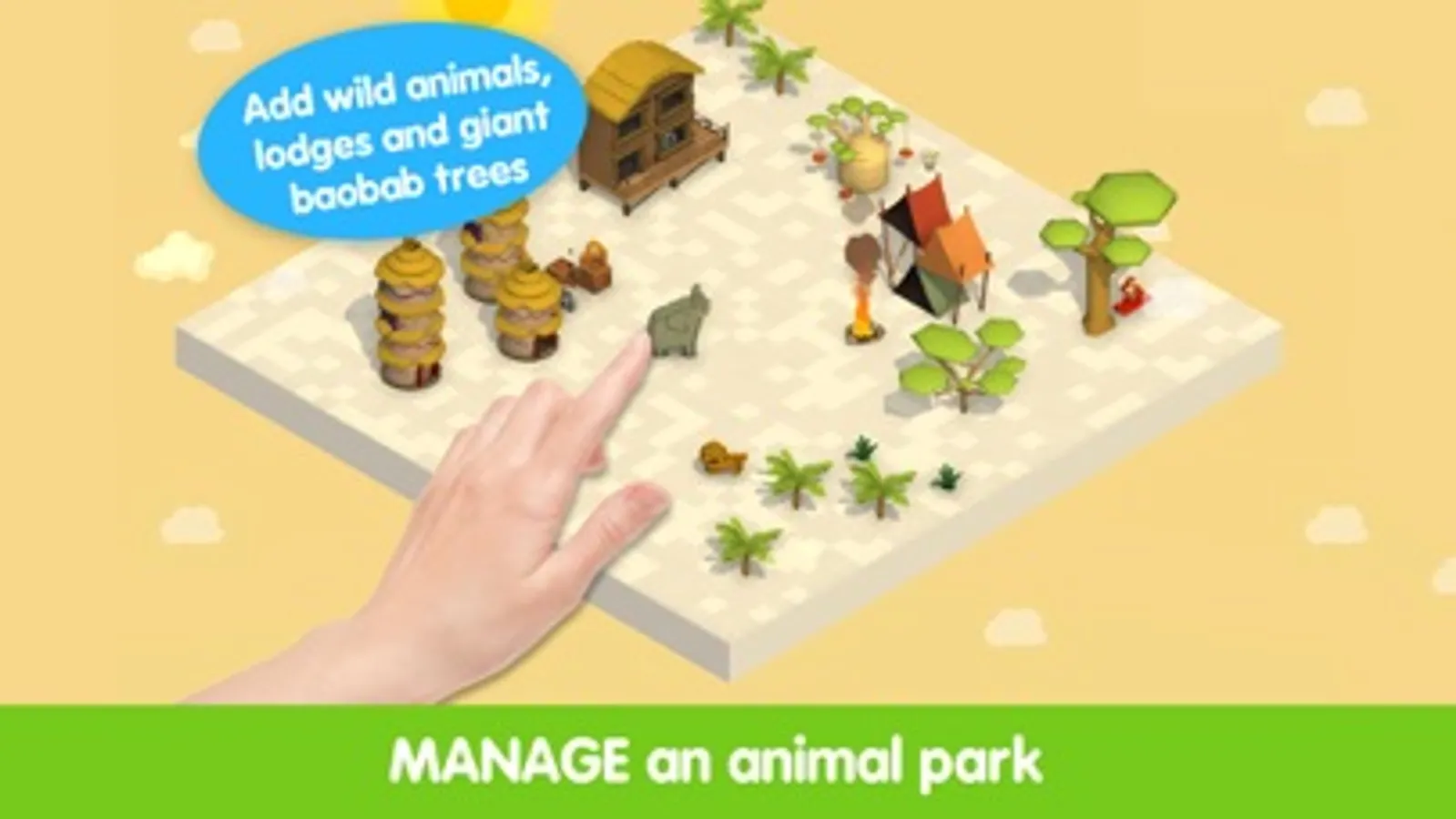 Then organize your animal park with its wild animals, lodges and giant baobab trees.