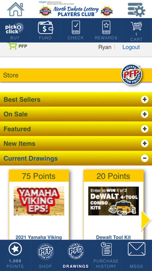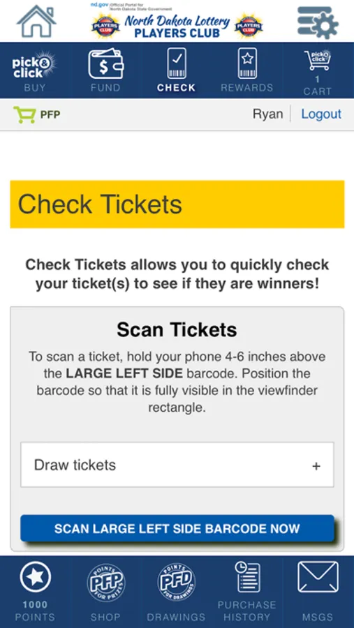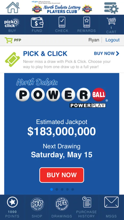 The ND Lottery Players Club mobile app makes playing the lottery even more fun, exciting and convenient with all the possibilities at your fingertips! Designed with players in mind, the ND Lottery Players Club mobile app offers ease and convenience for your on-the-go lifestyle. Buy a Pick & Click online play for as many games as you want, as often as you want! Use the CHECK feature to scan your tickets to see if you won. Also, scan your ticket with the REWARDS feature to earn points for every ticket. No need to manually enter the 25-digit webcode!