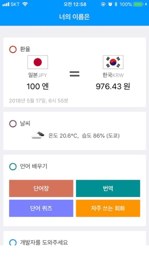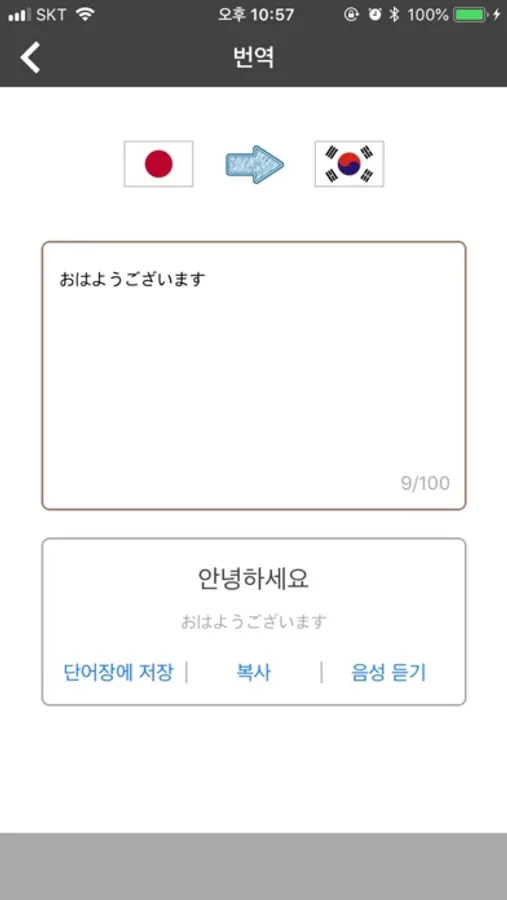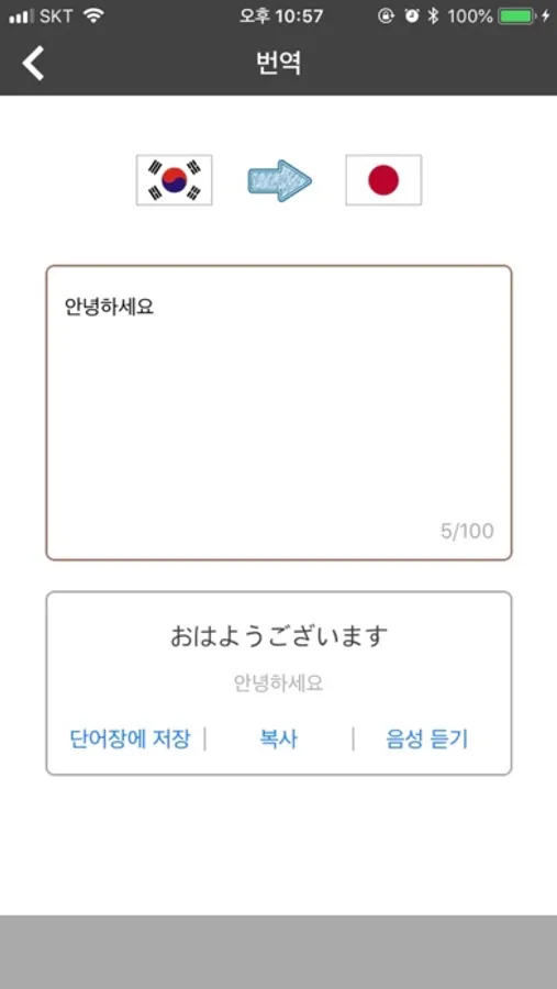 - 한글 일본어 간 양방향 번역, 음성지원
