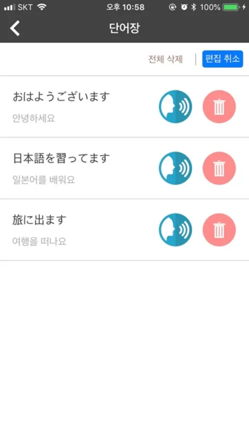 일본 여행가기 전! 빠르게 일본어를 배우세요. 단어, 문장 번역부터 음성듣기까지!