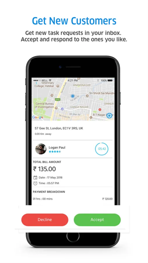 Our technology helps create an interface between you and the customer. You can review the customer's requirements and accordingly accept or deny the request. What's more, you can chat with the customers directly, or use the calling feature on our app to connect with the customer.