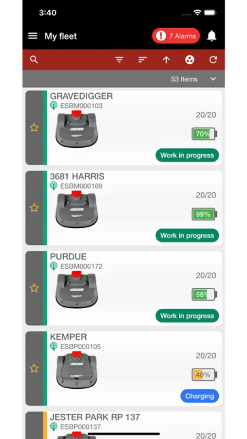 The Echo Robotics app gives you control to your robot, wherever you are. Check live status, battery level and performance of the last five days. Get easy overview of activities, parameters and schedule. Send any commands and get instant confirmation. Check robot GPS Location with associated alarms position. Search, sort, filter and group to compare robots.