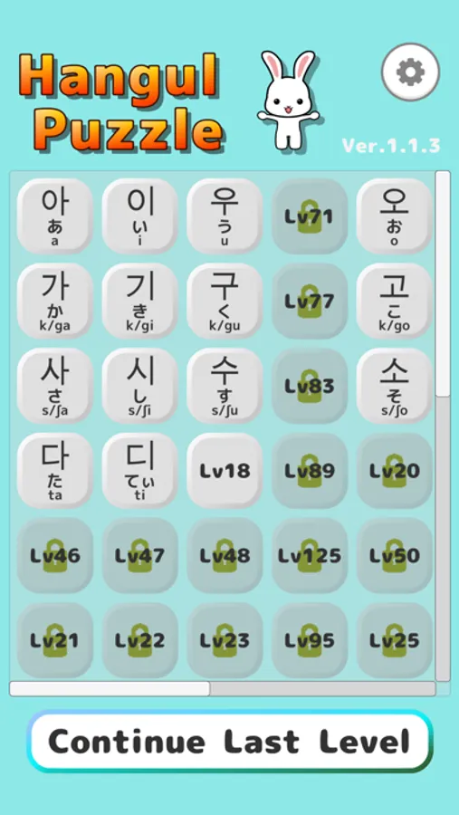 Every time I clear the game I can memorize new Hangul characters.