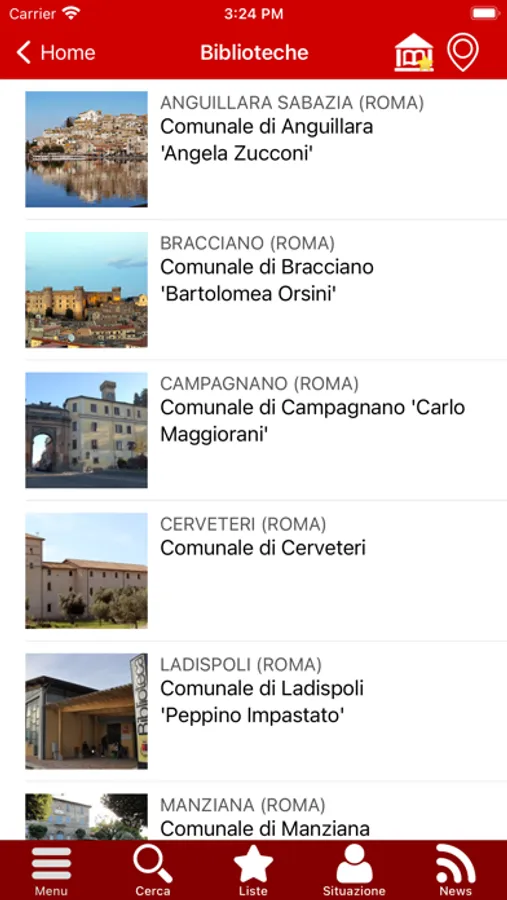 - visualizzazione biblioteche in mappa con tutte le relative informazioni